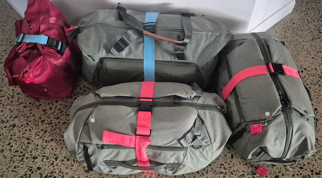 How much luggage are we taking? About 45kg’s worth, in 3 bags. One each for Morocco and one combined for the rest of the year. (Plus a foldie that’s holding winter boots and runners – they take up too much space … big footed people problems!)