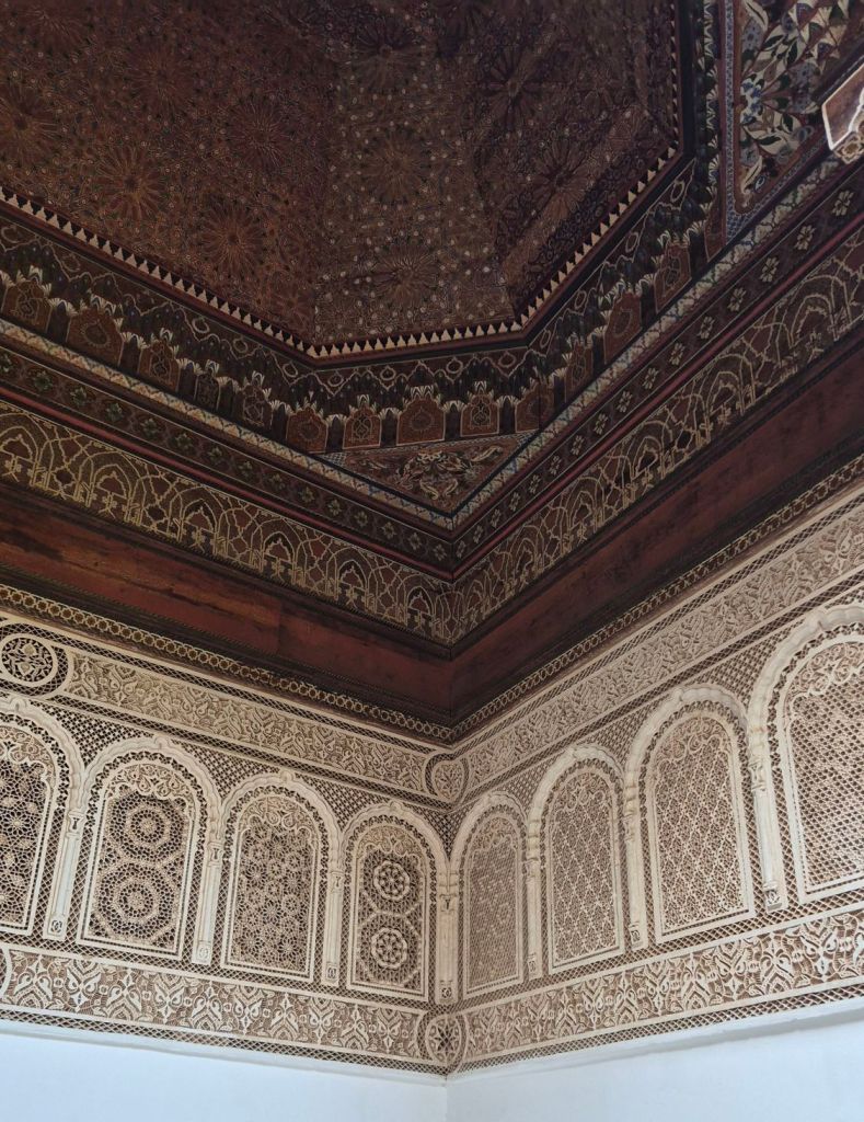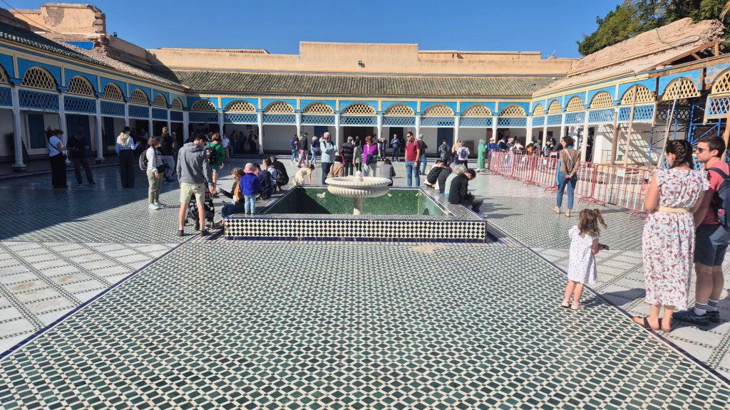 The Palais is half private and half public. It’s the home of the King when he’s in Marrakech. Previous occupants have been the French military, plus a previous Sultan with his 28 wives/concubines and eunuchs. It is ornately decorated and very popular, we were lucky to be there early.