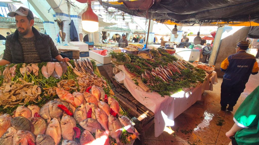 Sarah was finally feeling like a human being this morning so we had a quick brekkie and headed to the medina and fort so she could see them before we left. Market stalls and shops were just setting up for the day, and boats returning with today’s catch.