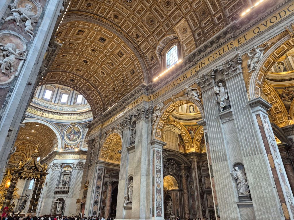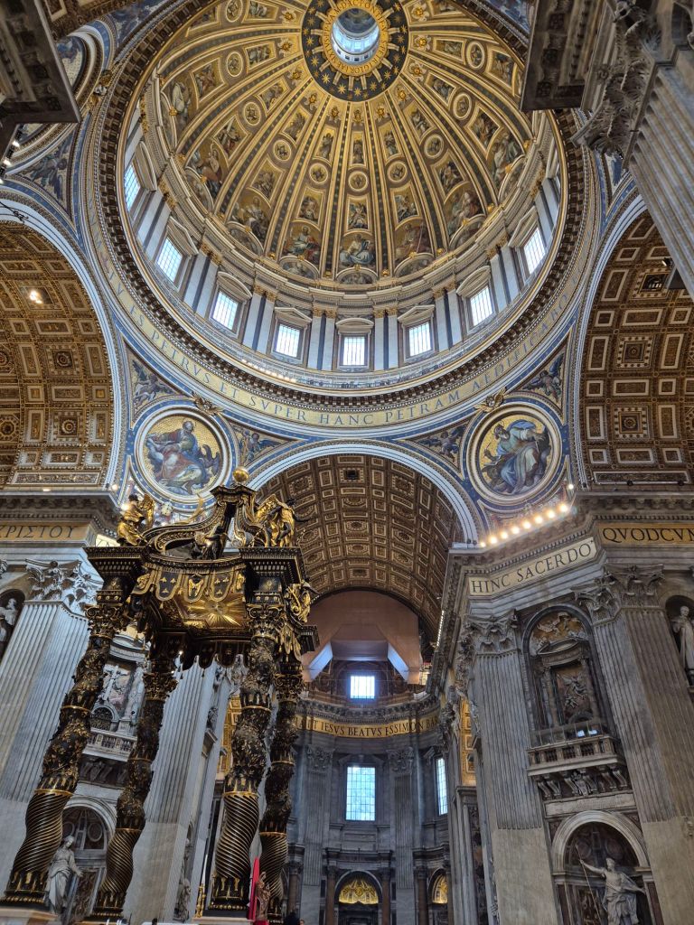 It was then on to St.Peter’s Basilica, the largest Christian church in the world. The guide told us that the letters in the words that run around the church are each 2m tall. That gives a idea of the scale of this place.