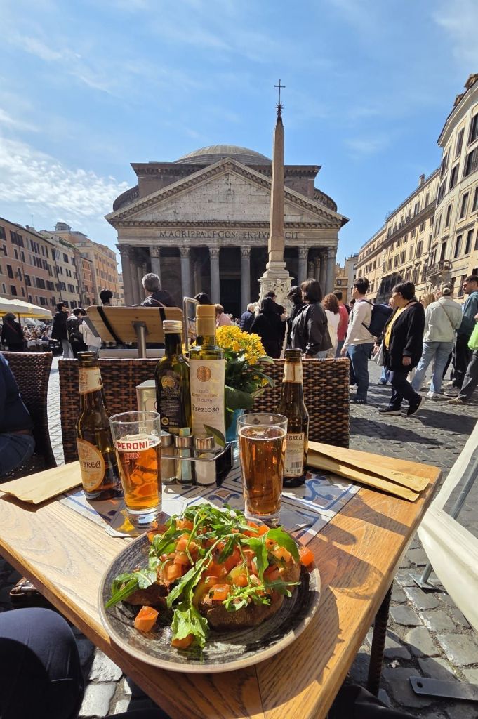 We hit 10,000 steps at 11am and noted this achievement with a beer and bruschetta in front of the Pantheon.