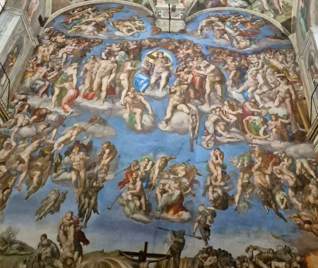 After the many galleries it was finally time to visit the Sistine Chapel. Michalangelo’s The Last Judgement has been recently cleaned. The covers and scaffolding were removed yesterday. Lucky us.