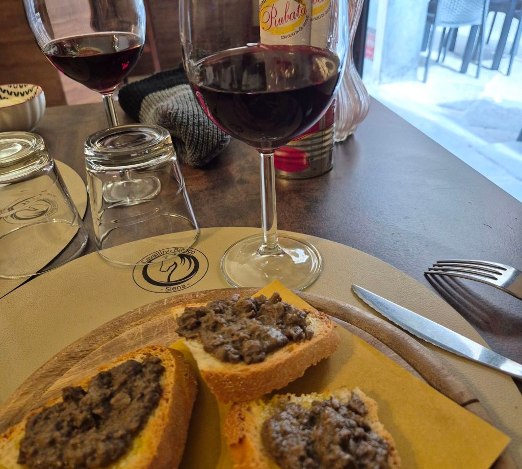 We then just wandered through the streets of Siena (🎵 Ohh, Siena…🎵), it really is a beautiful old city with narrow cobbled streets and tall red brick buildings. It was so cold that we went to have a bite to eat. Sadly we couldn’t find anywhere that served Chianti, liver AND fava beans so we made do with just Chianti and liver.