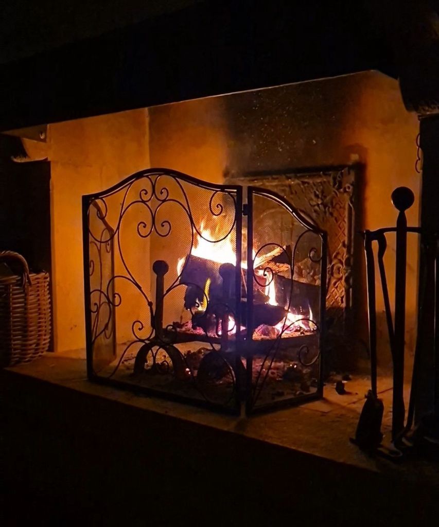We put ourselves to bed with a fire raging in the bedroom fireplace.
