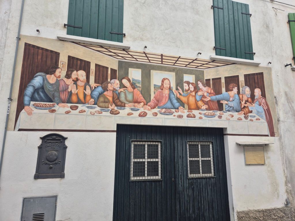 We did still manage our holiday beer by going 5 minutes up the road for a drink. The village just to the east of here, Brancafore, has lots of decorated houses, including one with a last supper fresco!