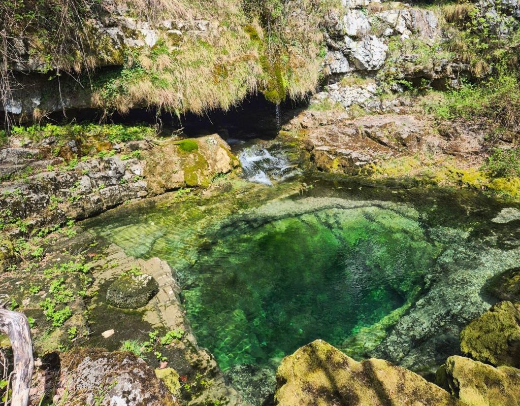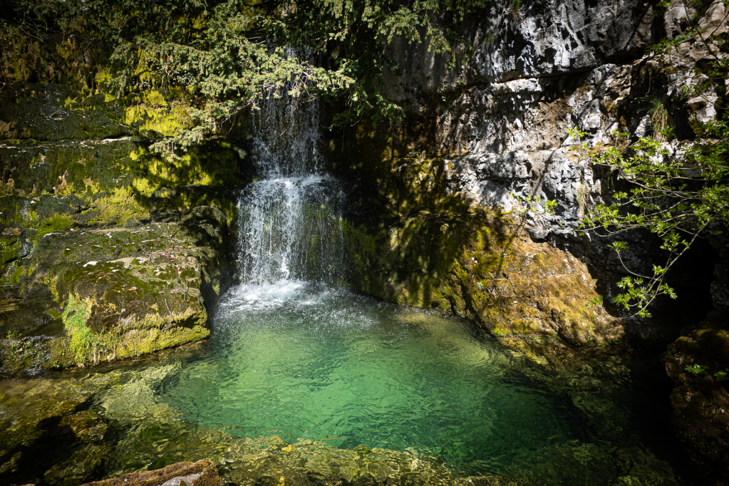 There was an information board at this pool about a cave system Gorgo Santo that had been explored here for the last hundred years. So far about 1.5km has been mapped. Just above the waterfall we found the cave system entrance just above another pool.