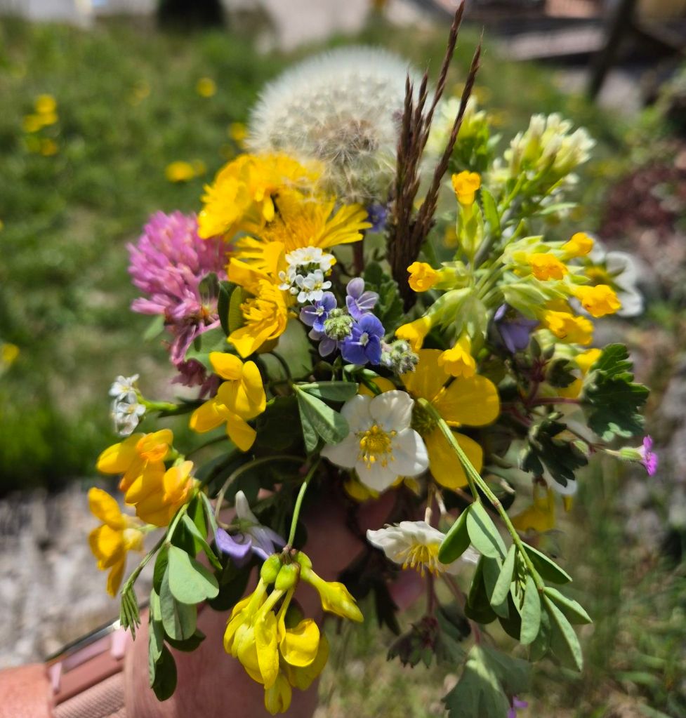 We then wandered back to our place to have some lunch, picking wildflowers as we went – ended up with about 19 different flowers!