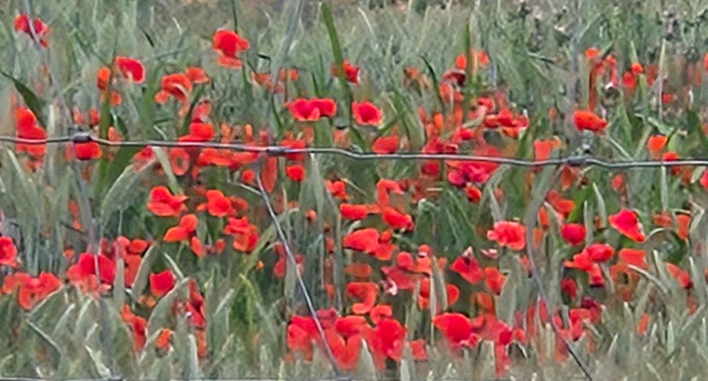 We noticed that for much of the day the sides of the roads and edges of fields had bright red poppies growing in abundance. They’re really pretty, and stunning in clumps as a red carpet in a field.